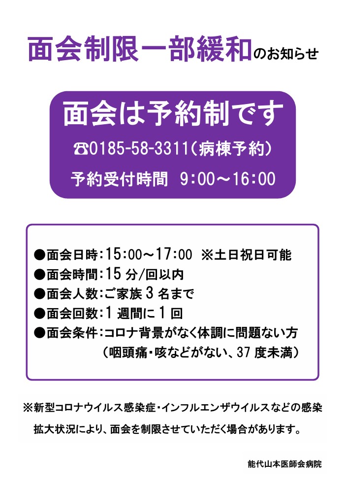 令和6年9月30日をもちましてリモート面会(テレビ電話)サービスは終了させていただきました。